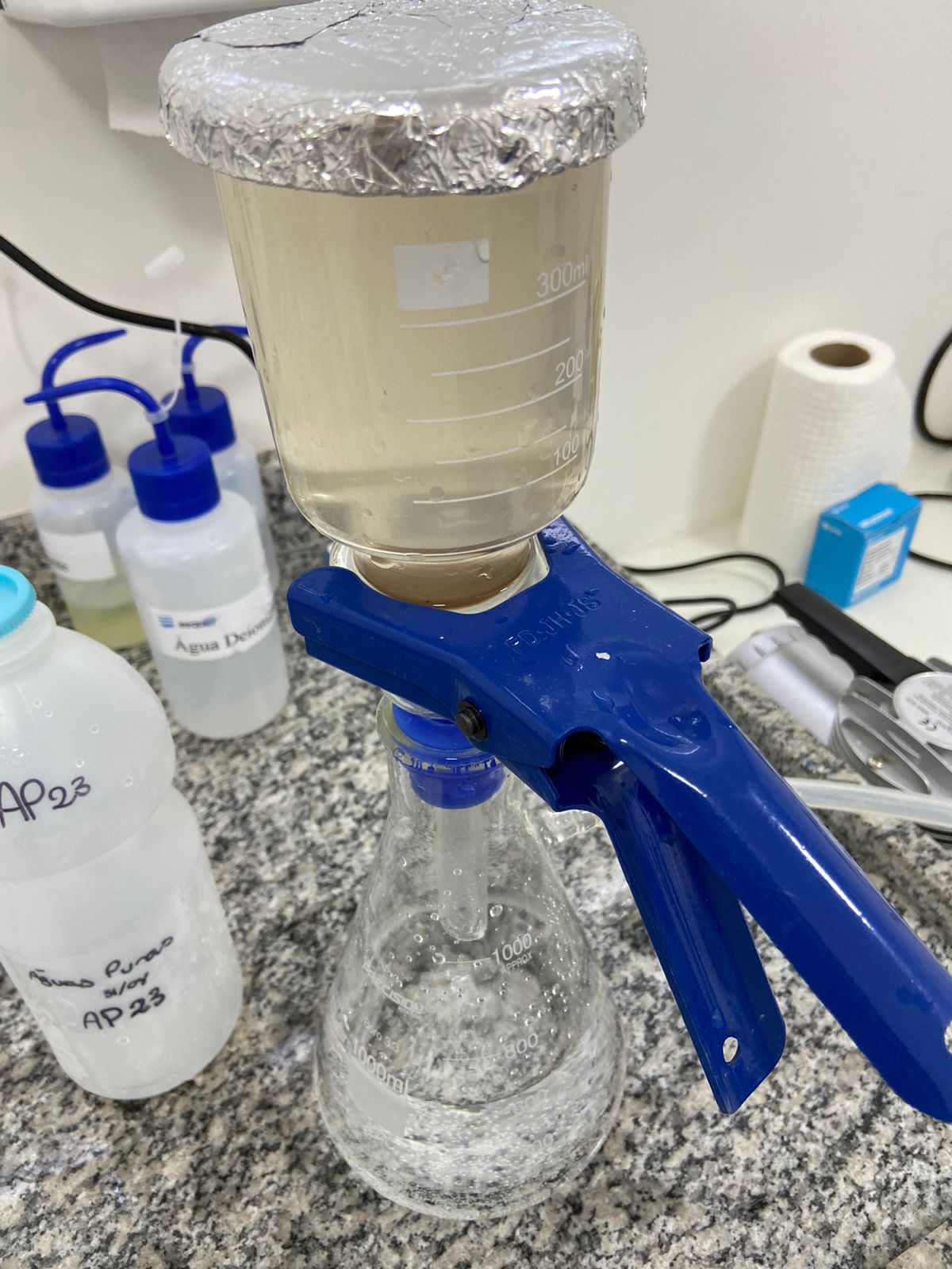 Estão sendo avaliados em laboratório os seguintes parâmetros: Turbidez, colimetria, pH, condutividade, salinidade, oxigênio dissolvido, STD, ORP, dureza, fósforo total, Carbono Orgânico, Carbono Inorgânico, Nitrogênio, STS, Coliformes fecais, Coliformes termotolerantes, Ferro, Cloreto e Nitrato. Além desses estão sendo verificados a presença de microplástico nas amostras das águas de poços.